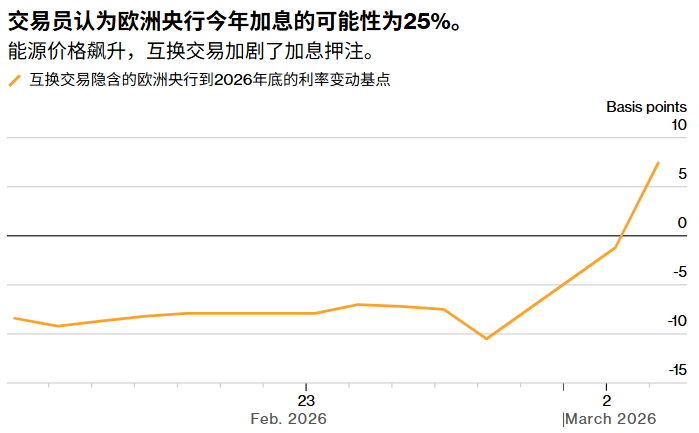 欧洲央行决策者目前乐于将借贷成本维持在2%,他们相信通胀率将回升至目标水平,并且该地区21个国家的经济能够维持温和增长。但中东冲突加剧了此前已存在的风险,这些风险包括美国加征关税、欧元走强以及可能涌入的大量廉价进口商品。交易员们现在认为,欧洲央行今年加息25个基点的可能性为50%。